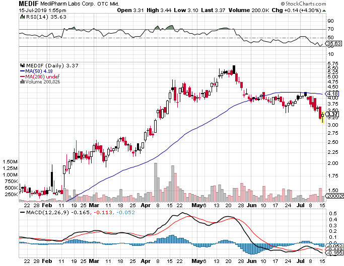 One difference between the two is that while Valens has been trending steadily higher, MediPharm has actually given back substantial ground. After reaching a high earlier this year of US$5.65, its current share price represents nearly a 40% pullback.