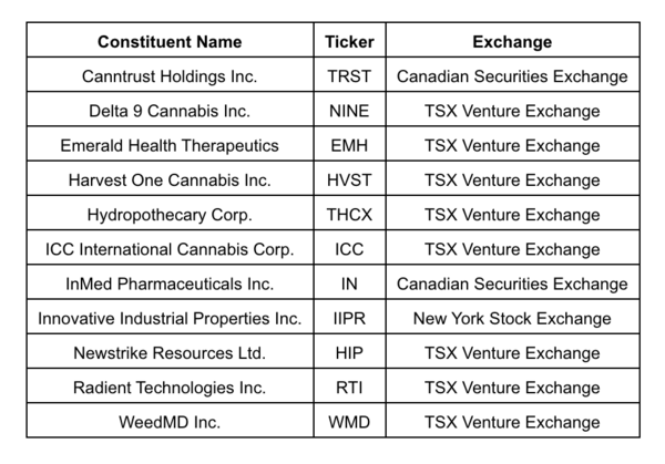 HMMJ is the world's first ETF that offers direct exposure to North American-listed securities that are involved with marijuana bioengineering and production. The HMMJ portfolio has expanded to include the following constituents:
